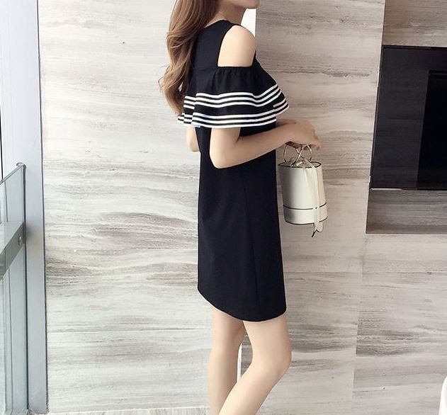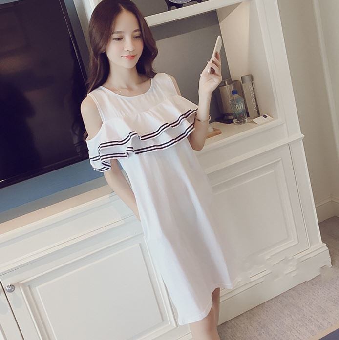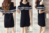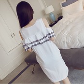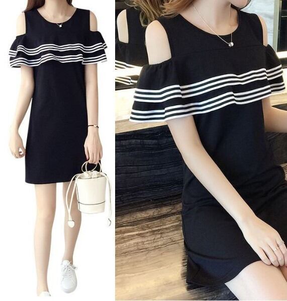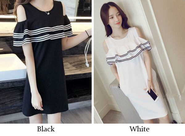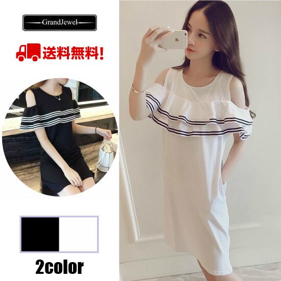 [送料無料メール便]レディースワンピース ミニスカートワンピース 小さめ 肩出し フリル カジュアル スポーティー 可愛い系 モテ系 綺麗系 セクシー系 お姉さん系 清楚系 お洒落 トレンド 白/黒