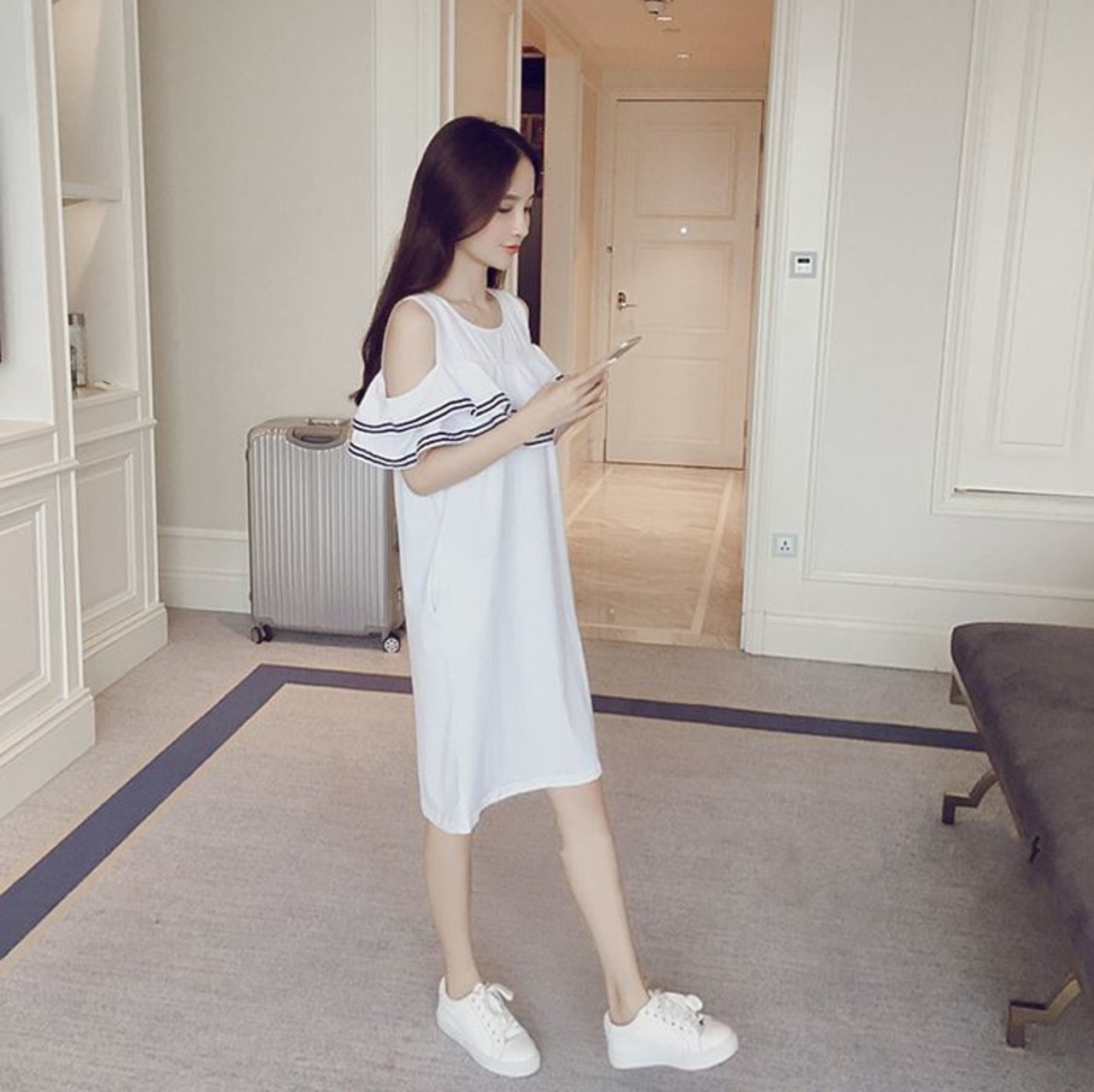 ほどよい肌みせのミニスカートワンピースです。