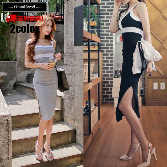 [送料無料メール便]レディースワンピース 2WAY キャミソールワンピース タイト グレー ブラック 春夏秋 大人可愛い系 モテ系 綺麗系 セクシー系 お姉さん系 清楚系 お洒落 トレンド