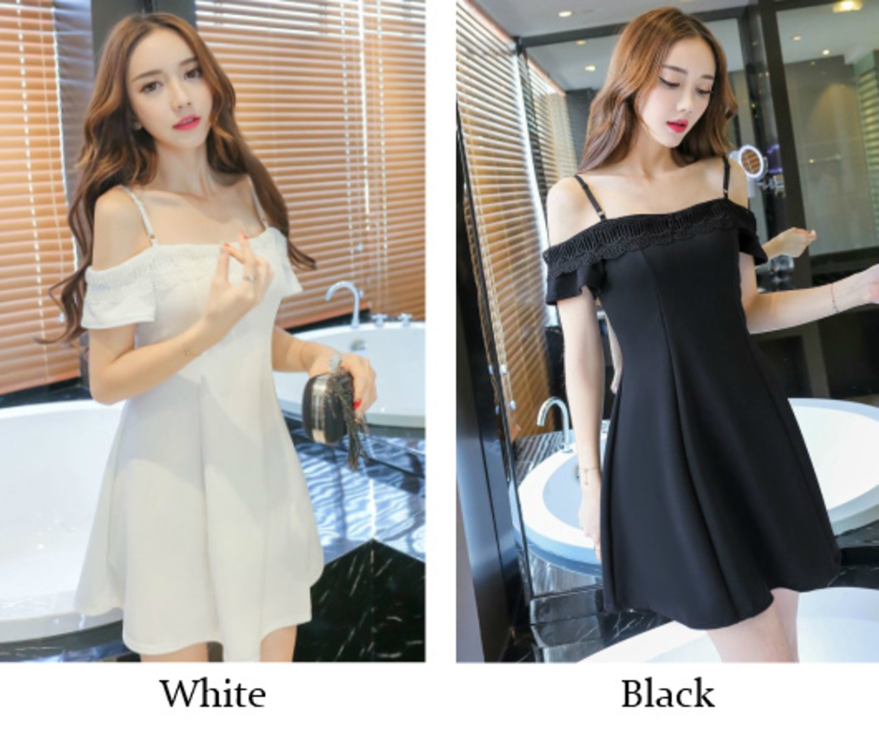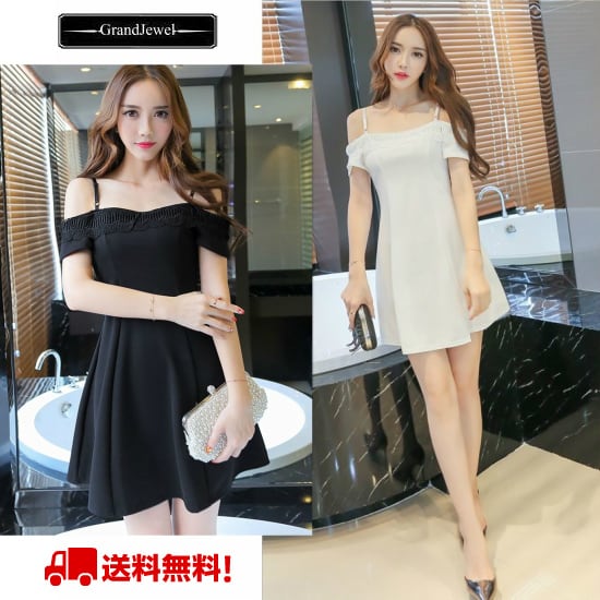 [送料無料メール便]レディースワンピース ミニスカートワンピース 肩出し オフショルダー キャバ嬢ドレス 可愛い系 モテ系 綺麗系 セクシー系 お姉さん系 清楚系 オフィス お洒落 トレンド 白/黒
