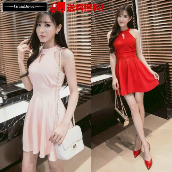 [送料無料メール便]レディースワンピース ノースリーブ ピンク レッド ミニスカートワンピース キャバ嬢ドレス セクシー 大人可愛い系 モテ系 綺麗系 お姉さん系 ナイトオフィス お洒落
