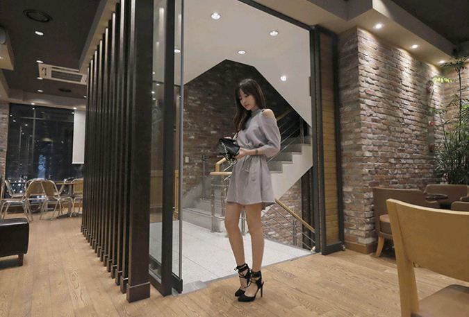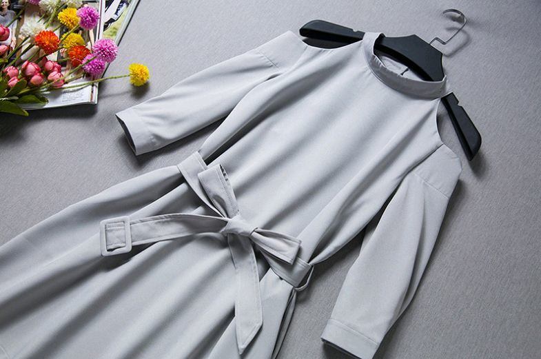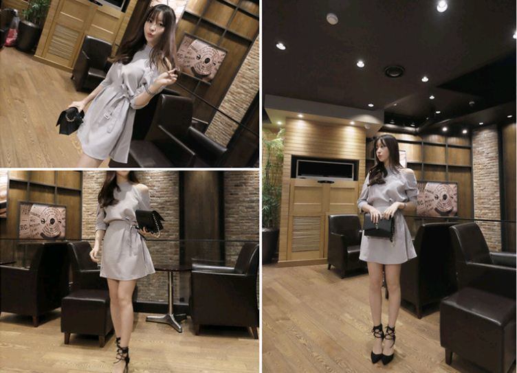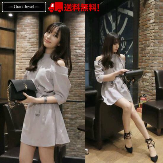 [送料無料メール便]レディースワンピース 大人可愛い グレー 春夏秋 肩出し 五分袖 七分袖 ミニスカートワンピース セクシー 上品 シンプル お洒落 トレンド